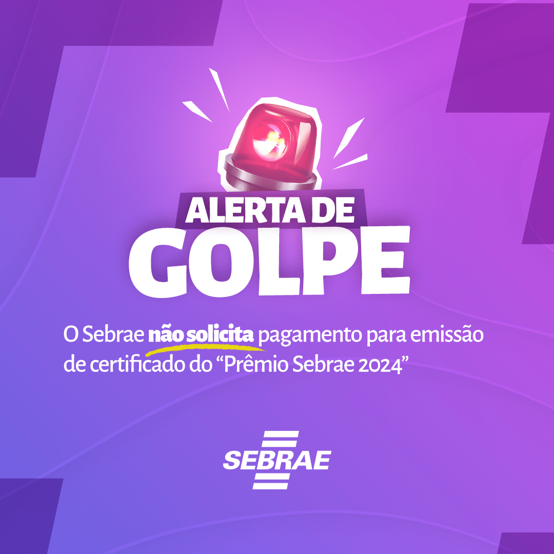 ALERTA: O SEBRAE não envia mensagens via Whatsapp, e-mail, SMS ou qualquer outro meio solicitando qualquer tipo de pagamento, confirmação ou código via SMS. Se receber algo assim ignore! É uma fraude envolvendo a marca SEBRAE.