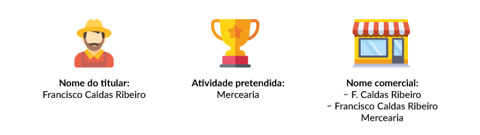 O nome comercial deve ser o do titular. Se houver um nome idêntico a um já registrado, ele poderá ser abreviado, desde que não seja o último sobrenome, ou ser adicionado um termo que indique a principal atividade econômica explorada pela empresa como elemento diferenciador.