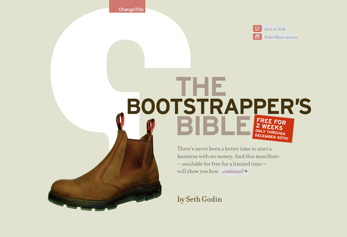 Para saber mais sobre o tema, leia o “Bootstrapper's Bible” de Seth Godin: o livro é gratuito e está disponível na web.