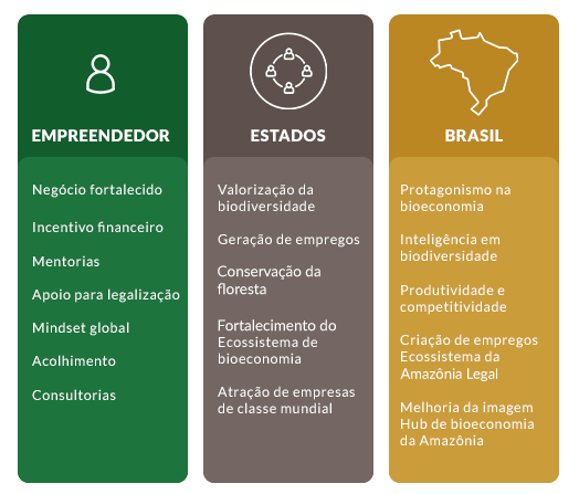 4. Promove o ecossistema regional, o ambiente corporativo e a inovação, ampliando o mercado de circulação dos produtos e colocando o Brasil num patamar mundial de uso sustentável dos recursos naturais.