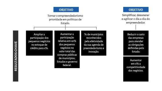 Tornar o empreendedorismo protagonista na transformação socioeconômica ambiental, além de ser um catalisador para a realização de sonhos dos brasileiros. As competências empreendedoras serão estimuladas em toda a sociedade e culturalmente valorizadas. Em 2035, a taxa de empresas com mais de 3,5 anos de existência será superior a 40%, aumentando significativamente o sucesso de negócios, respeitados na sua diversidade, caracterizados pela sustentabilidade, acesso à tecnologia, crédito, mercado, inovação e inclusão.