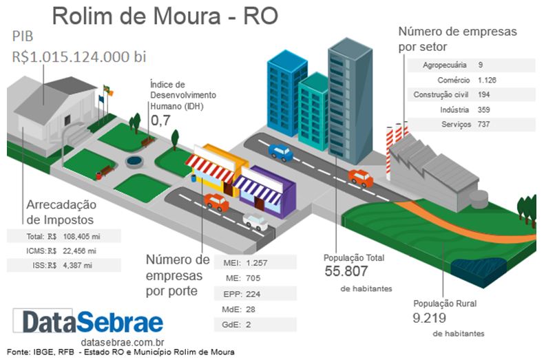 Confira o resultado de pesquisas de dados secundários sobre Rolim de Moura/RO para subsidiar o planejamento de ações do Sebrae no município.