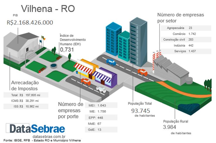 Assim, este documento apresenta o resultado de pesquisas de dados secundários sobre Vilhena (RO) para subsidiar o planejamento de ações do Sebrae no município.