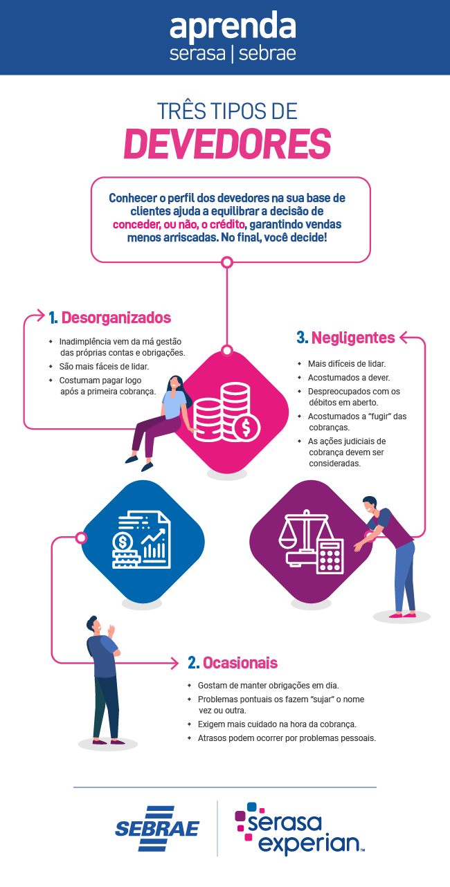 Aí, pronto! A quebra de confiança e as cobranças viram um problema para ambos: o comerciante, que espera reaver seu crédito, e o consumidor, que precisa ser cobrado. Por isso, mesmo no convívio com aquele “cliente amigo” de décadas, é bom se precaver antes de liberar a venda a prazo. Um dos mais poderosos preventivos é conhecer melhor, comercialmente falando, a quem se concede crédito. A partir daí, o empresário pode traçar o chamado risco de inadimplência para cada candidato a comprar fiado.