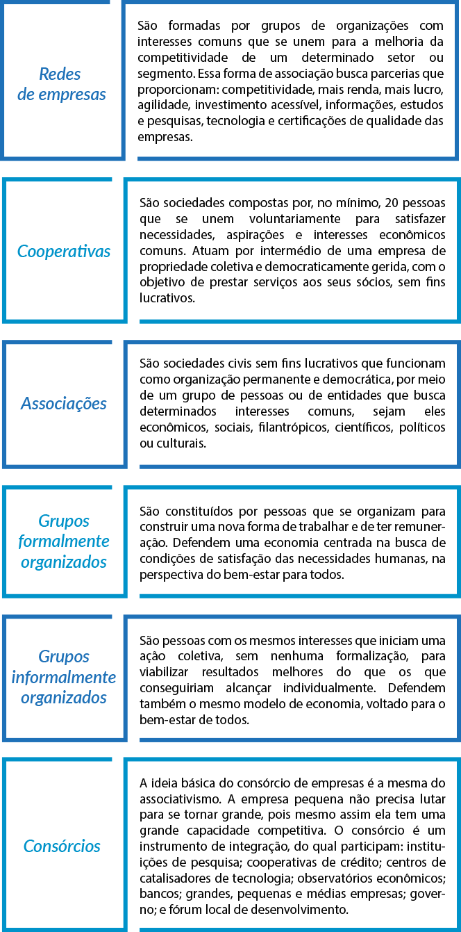 Organizações associativas que podem ser estimuladas pela administração municipal:
