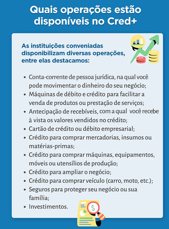 O Cred+ é um programa do governo federal, com apoio do Sebrae, que busca simplificar o processo de obtenção de produtos e serviços financeiros, desburocratizando a relação entre os micro e pequenos empreendedores e as instituições financeiras, sendo mais uma importante ferramenta para auxiliar na gestão dos seus negócios.
