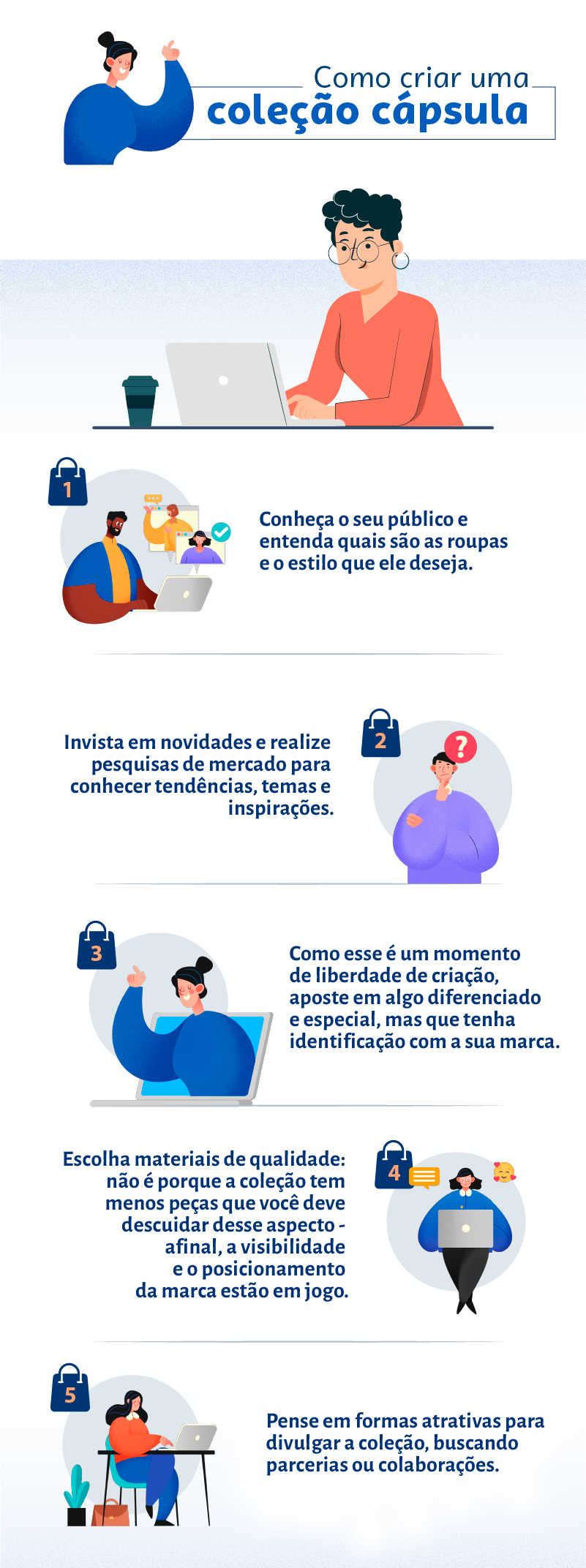 Confira no infográfico nossas dicas sobre como criar uma coleção cápsula.