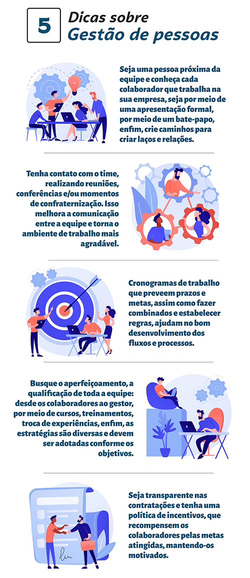 Veja no infográfico cinco dicas de gestão de pessoas que melhoram o desempenho do empreendimento. Acompanhe também a série de artigos Dicas de Gestão para Varejistas.