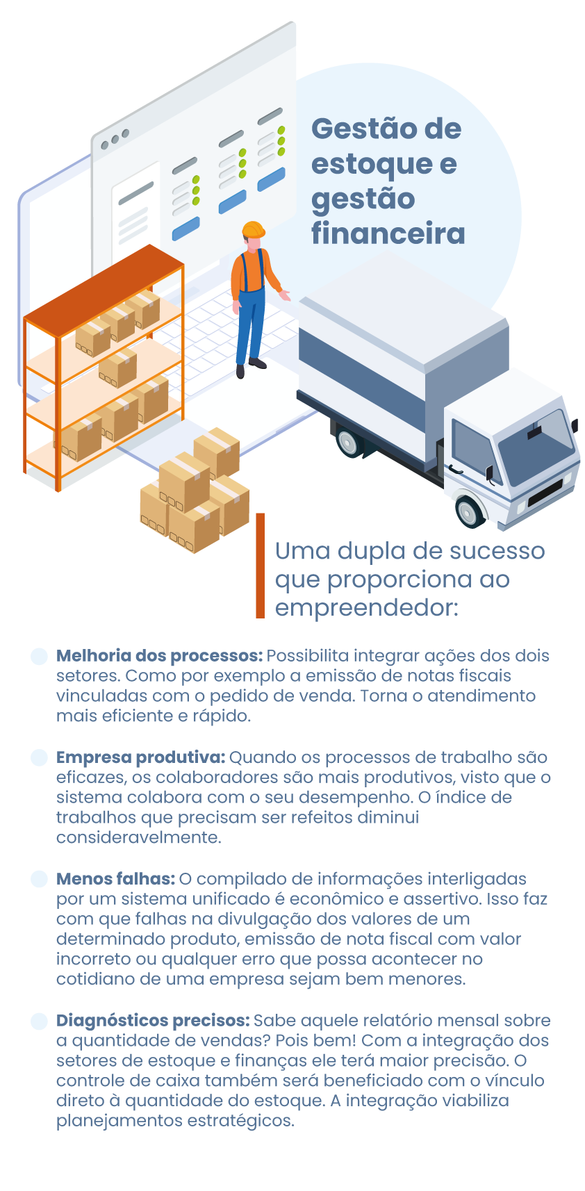 Veja alguns dos maiores benefícios da integração entre gestão de estoque e gestão financeira no infográfico abaixo.