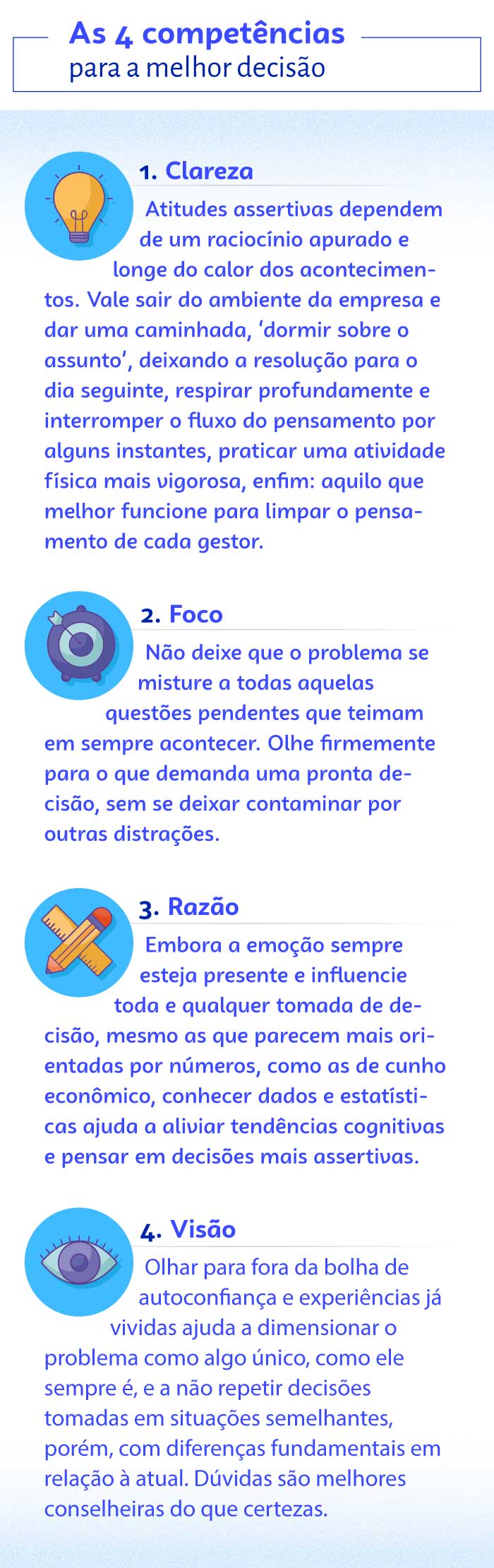Mesmo a decisão embasada em fatos concretos, e que parece ser a melhor para aquele dado problema, pode se revelar absolutamente errada. A atitude firme e correta independe do resultado e mostra que a liderança é segura mesmo quando falha.