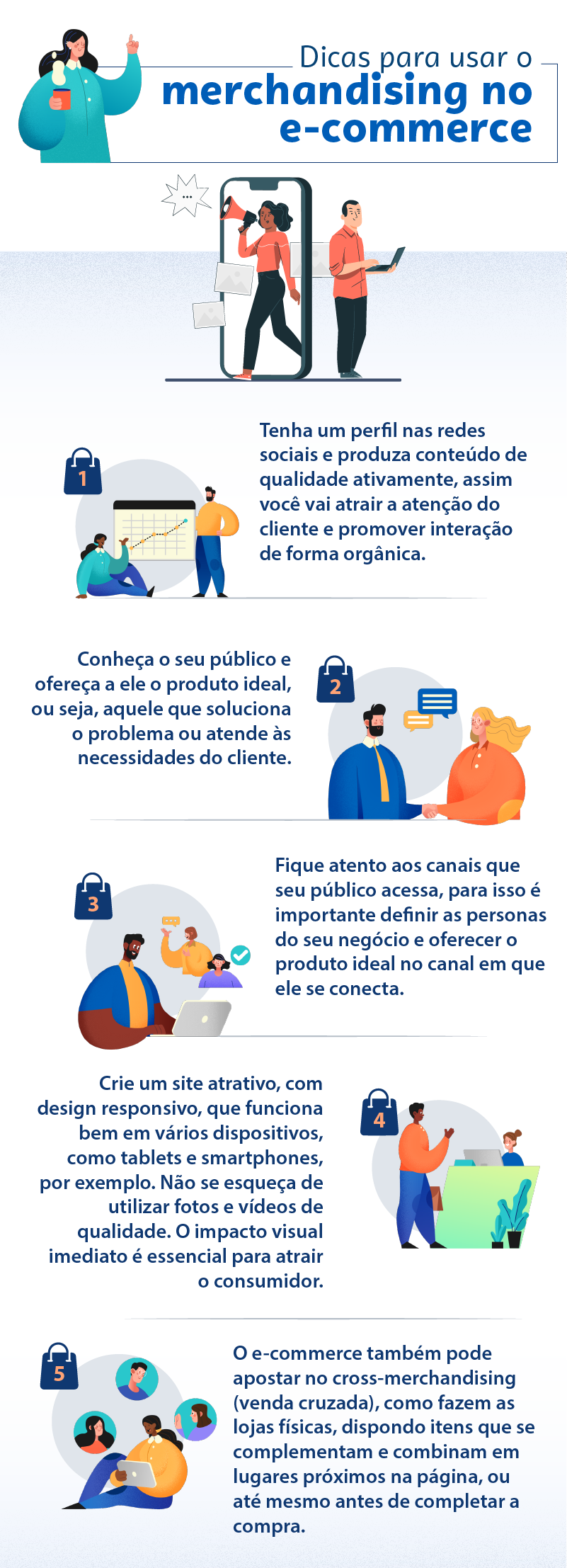 Aumento das vendas, circulação de mercadorias e redução no tempo de decisão do cliente são algumas das vantagens do merchandising em um e-commerce, porém isso requer atenção, pois, se não for bem aplicado, pode não só atrapalhar a venda do produto, mas também distorcer a imagem da marca como um todo. Nesse sentido, é importante que a equipe responsável pelo merchandising estude todos os elementos envolvidos em uma ação, nunca se esquecendo da imagem que a empresa quer construir no mercado.