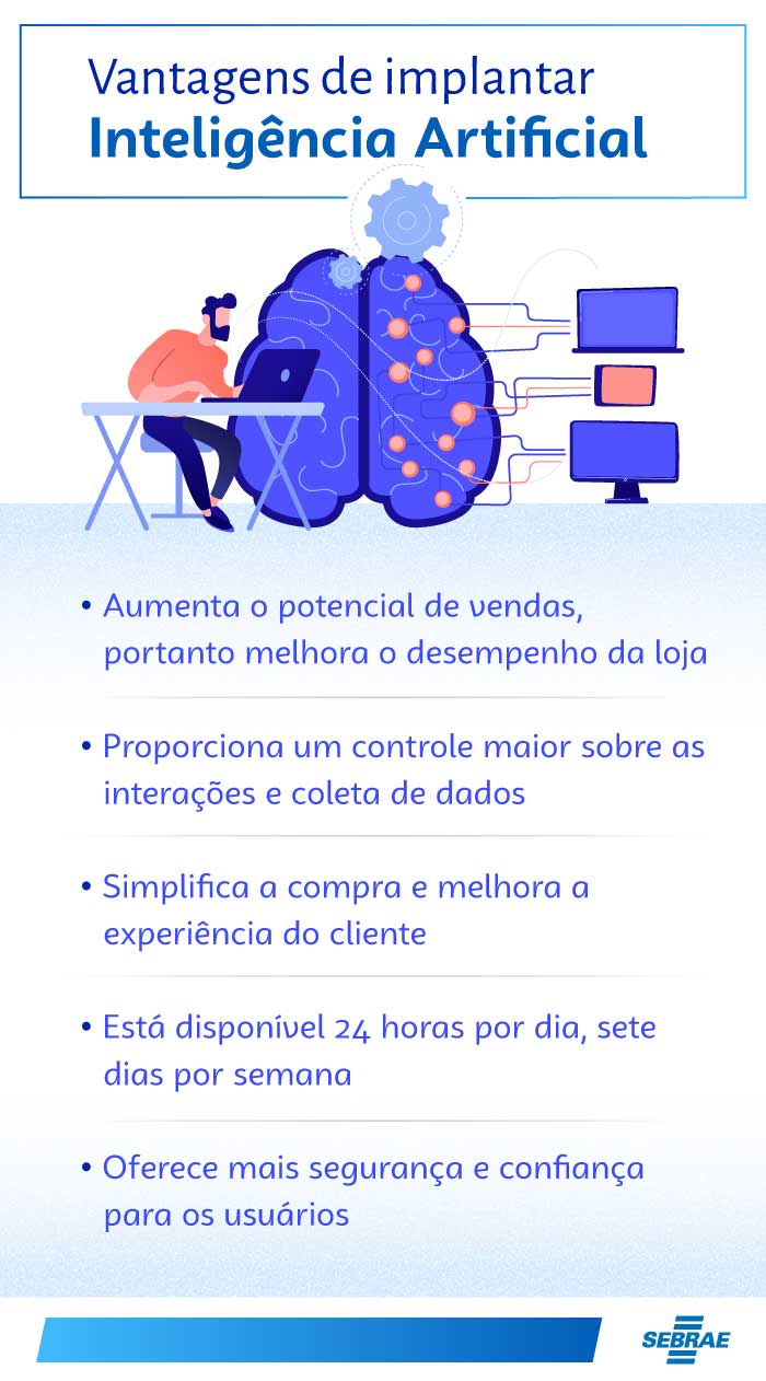 Uma das grandes tendências tecnológicas para o e-commerce em 2023 é o uso da Inteligência Artificial (IA), um recurso que ganhou ainda mais força durante a pandemia e que continua em evidência nas lojas virtuais. Uma das grandes vantagens (veja outras no infográfico) é que, com a IA, é possível, por exemplo, personalizar o direcionamento de anúncios publicitários e marketing, graças aos dados que são coletados, melhorando o retorno do investimento que a empresa faz em suas campanhas.