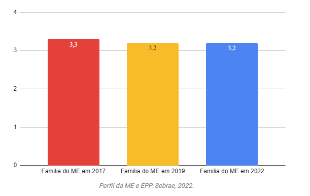 Em média a família do microempresário tem o tamanho da família brasileira, ou seja, é composta por 3,3 pessoas. Resultado semelhante foi encontrado entre os MEI.