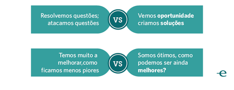 A mudança de mentalidade aqui está no hábito das pessoas de começarem relatando uma situação, com sua opinião vinculada, para depois chegar ao problema e, por fim, à solução.
