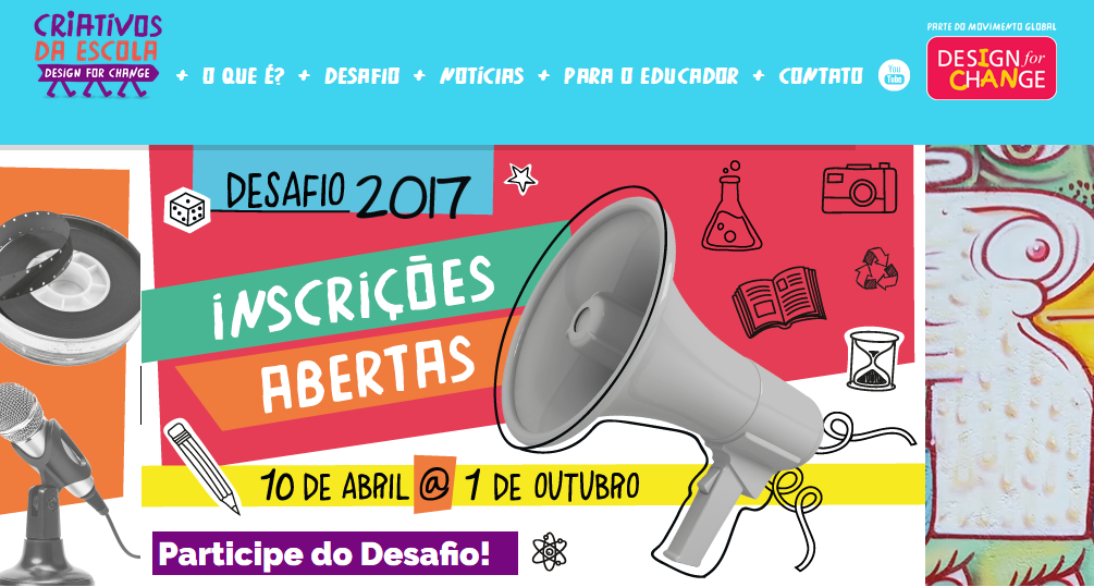 Esse é o conceito do movimento Design for Change, criado pela indiana Kiran Bir Sethi, após seu filho de seis anos lhe dizer que havia sido repreendido por desenhar de maneira diferente da proposta. Kiran percebeu que era necessário mudar. No Brasil o movimento chama-se Criativos da Escola.