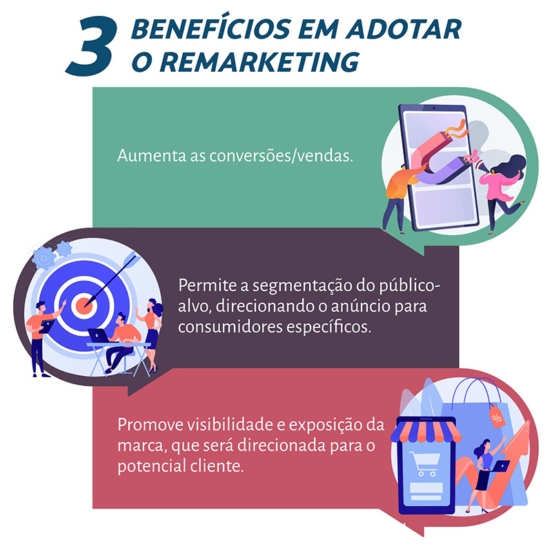 Uma das principais vantagens em adotar essa estratégia é que ela facilita a conversão, ou seja, torna-se muito mais fácil você engajar um cliente que visitou a página e demonstrou interesse por um produto do que buscar clientes que nunca visitaram a loja virtual, não é mesmo? (Veja no infográfico outros benefícios).