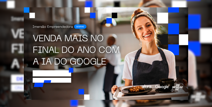 Participe da imersão online e gratuita que vai transformar sua forma de empreender. Em parceria com o Google, Sebrae e Alura + FIAP Para Empresas, o curso oferece capacitação prática em ferramentas digitais para aumentar vendas, visibilidade e eficiência.