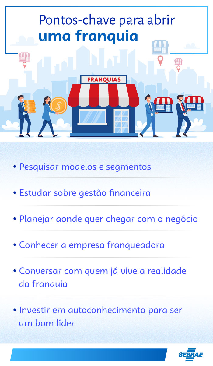 Quando os obstáculos surgirem, você deve estar pronto. E isso é possível? Sim! Porque o que não faltam são informações, dados e pesquisas, aqui mesmo no ambiente digital do Sebrae, que podem te orientar corretamente neste caminho rumo ao mundo do franchising, um dos mais lucrativos e seguros para quem está começando a empreender e também para o empresário que quer expandir seus negócios.