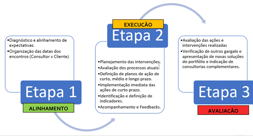 - As Consultorias podem durar de 15 a 45 dias, com carga horária mínima de 10 horas.