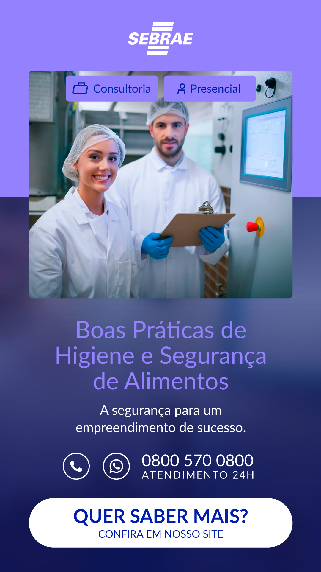 Além da melhoria da qualidade dos processos internos de produção de alimentos, você receberá: