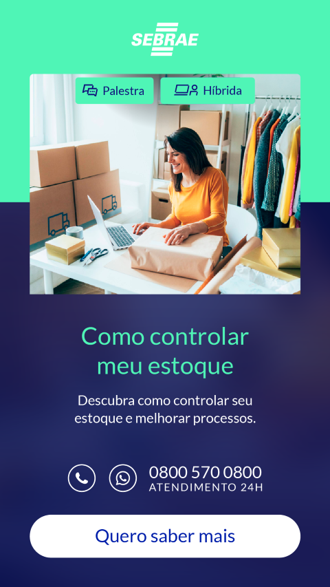 Pensando nisso, o Sebrae preparou esta palestra, que abordará os principais temas sobre controle de estoque, oferecendo estratégias e ações para aplicação prática no seu negócio. Identifique os principais aspectos desse importante tema na gestão da sua empresa e compreenda como você pode otimizar os recursos do seu negócio, evitando desperdício, maximizando lucro e favorecendo o giro dos seus produtos.