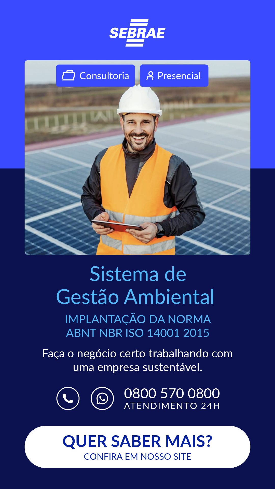 Nesta consultoria, você torna seu negócio responsável de acordo com a norma, e trabalhar com um sistema de gestão ambiental pode trazer diversos benefícios. Entre eles: redução do consumo de energia e água e até no desperdício de matéria-prima, o que garante uma produção mais limpa.