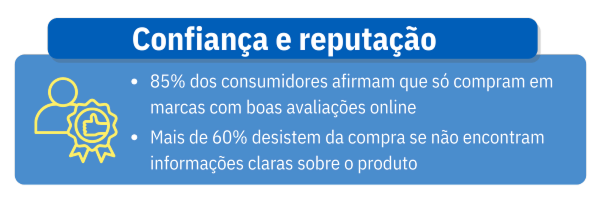Segundo a pesquisa da Dito CRM e Opinion Box, mais de 70% dos brasileiros leem comentários e avaliações antes de concluir a compra, e 39% pesquisam sempre a reputação da marca. Isso significa que não basta oferecer desconto: é preciso transmitir segurança.