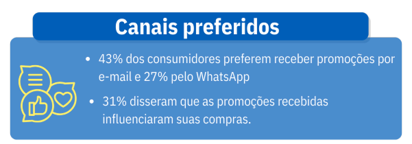 Não basta criar boas ofertas: é preciso divulgar nos canais certos. O consumidor da Black Friday quer receber promoções de forma prática. E, nesse ponto, o e-mail e o WhatsApp são os canais de comunicação mais aceitos. O e-mail segue como espaço ideal para enviar promoções segmentadas e recorrentes, enquanto o WhatsApp funciona bem para mensagens rápidas e personalizadas.