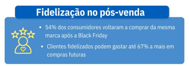 Em 2024, 54% dos consumidores voltaram a comprar das mesmas marcas depois da Black Friday, e outros 16% afirmaram que pretendem comprar novamente. Ou seja, existe um grande potencial de fidelização que muitas empresas deixam de aproveitar.
