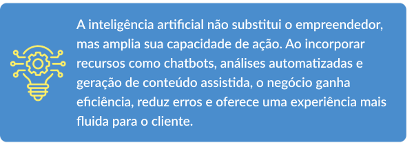 Para os pequenos negócios, a IA oferece a possibilidade de personalizar a comunicação, otimizar processos e tomar decisões baseadas em dados reais. Ferramentas simples e acessíveis permitem automatizar tarefas, analisar o comportamento de compra e criar experiências que se adaptam ao perfil de cada cliente.