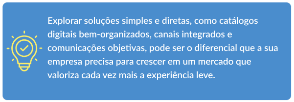 Para os pequenos negócios, isso representa uma oportunidade de se destacar: simplificar não exige grandes investimentos, mas sim atenção aos detalhes que fazem diferença na rotina do cliente.