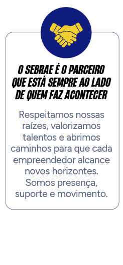 Cada negócio tem uma trajetória única — e muitas delas foram impulsionadas pela parceria com o Sebrae. Queremos ouvir a sua história!
