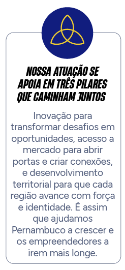 >> O Sebrae desenvolve ecossistemas de inovação em todas as regiões de Pernambuco e fomenta mais e melhores startups e negócios inovadores.