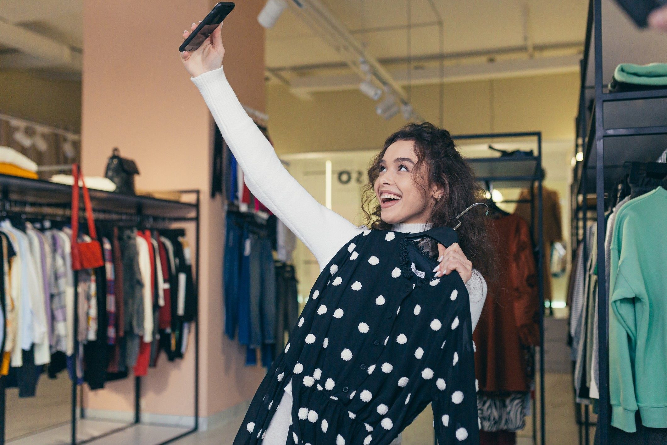 É provável que você também possa utilizar a realidade aumentada para esse tipo de processo. Ou seja, o cliente tira uma foto de si, insere em uma plataforma digital da empresa e encaixa as roupas em seu próprio corpo constante na fotografia. Assim, ele consegue ter uma ideia melhor das combinações de cores e de como as roupas ficarão no momento do uso.
