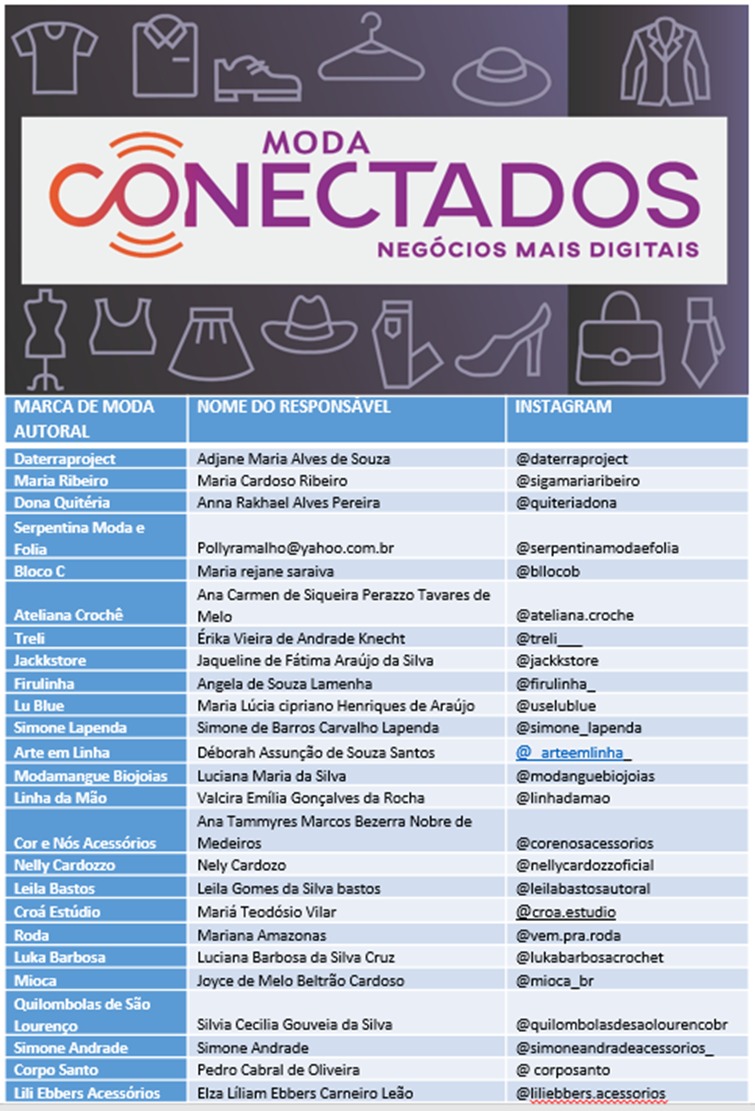 Por isso, fizemos uma curadoria e selecionamos mais de 20 empresas do mercado de moda autoral para expor sua marca nessa vitrine. Os produtos terão QR Codes que ao serem fotografados darão acesso às redes sociais ou outro canal de vendas das marcas.