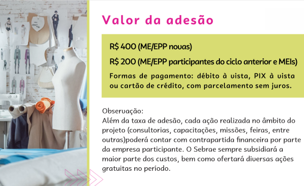 O valor referente à taxa de adesão ficará registrado como crédito, podendo ser utilizado uma única vez, sendo integralmente abatido do valor de um serviço de consultoria que a empresa venha a contratar junto ao Sebrae/PI durante o projeto.