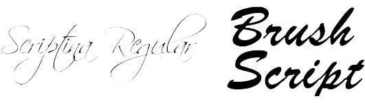 Imitam a escrita caligráfica. Transmitem tradição, elegância e bom gosto. Estão associadas aos tempos antigos. Geralmente, estas fontes são usadas em convites e materiais que querem passar uma ideia de “feito a mão”. Não combinam muito com peças digitais. Exemplos:
