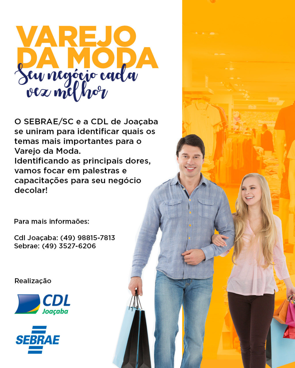 A CDL Joaçaba e o Sebrae estão lançando uma ação para o Varejo da Moda, a qual consiste em identificar demandas que o segmento possui para trazer soluções e palestras específicas para o segmento.