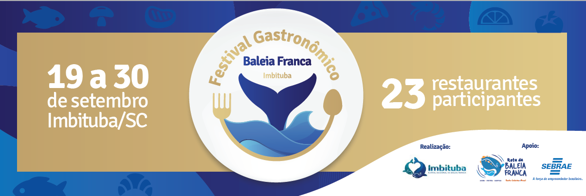 O Festival Gastronômico Baleia Franca chega a sua quinta edição e, neste ano, tem a participação de 23 estabelecimentos de alimentação fora do lar, como restaurantes, hamburguerias, pizzarias e sushis. A iniciativa acontecerá de 19 a 30 de setembro, em Imbituba. Além dos atrativos turísticos que a cidade oferece, um dos grandes diferenciais do evento é o valor promocional: cada estabelecimento vai disponibilizar um prato especial no preço único de R$ 49,90.