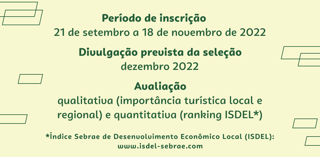 O edital da parceria entre o Sebrae e o Banco Interamericano de Desenvolvimento (BID) tem o objetivo de selecionar 10 (dez) destinos turísticos no Brasil para implementação da estratégia de Destinos Turísticos Inteligentes (DTI).