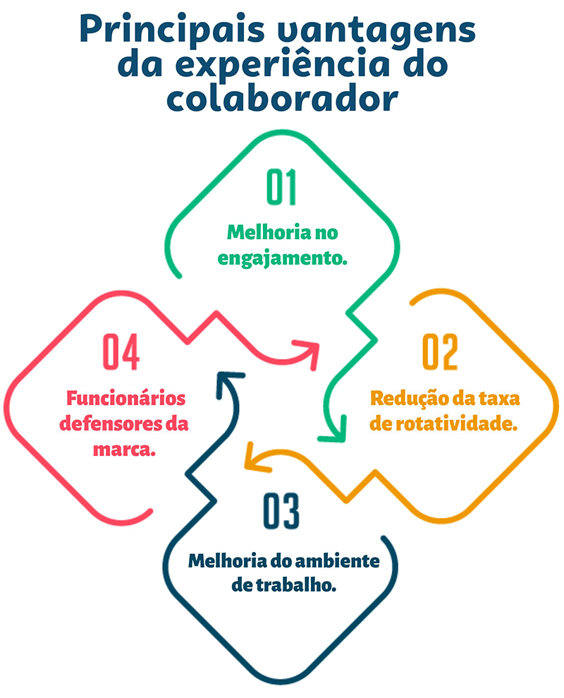 O relacionamento com o colaborador é a base para o relacionamento com o cliente e, do mesmo modo como a experiência do cliente é planejada, a experiência do colaborador também precisa desse mesmo cuidado. É com base nesse pensamento que trazemos o conceito de Employee Experience, voltado para a experiência e valorização do colaborador.
