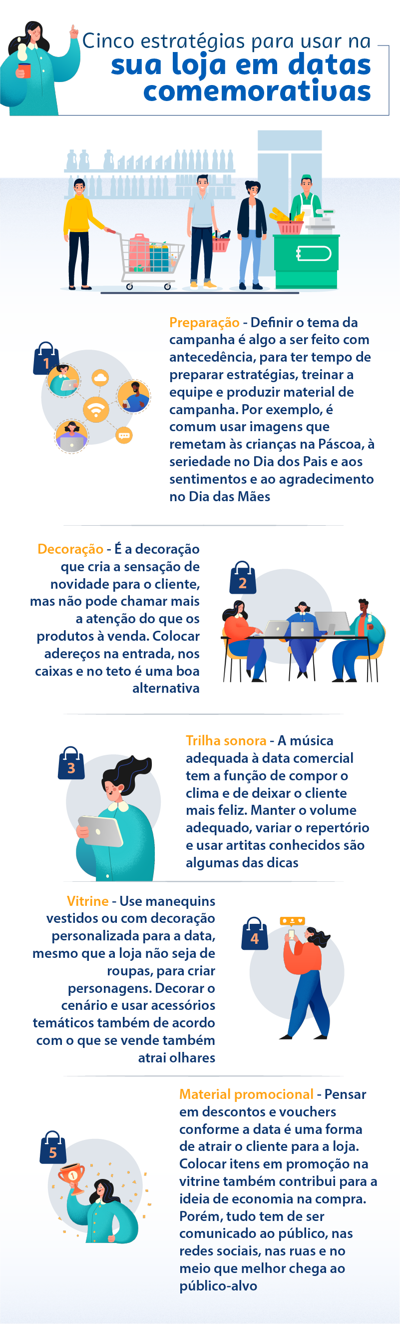 Vale lembrar ainda que não há um limite de datas do calendário comercial que se pode usar em um ano, mas é preciso respeitar a capacidade da loja de se adequar sem perder a qualidade nas ações. Assim, evita-se o improviso que, normalmente, é percebido pelos clientes