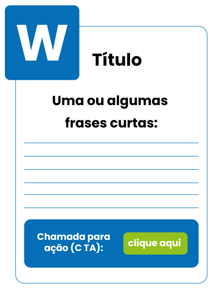 Uma ou algumas frases curtas: trazem mais informações e são chances para convencer o leitor a realizar uma ação. Devem ser claras, diretas e objetivas.