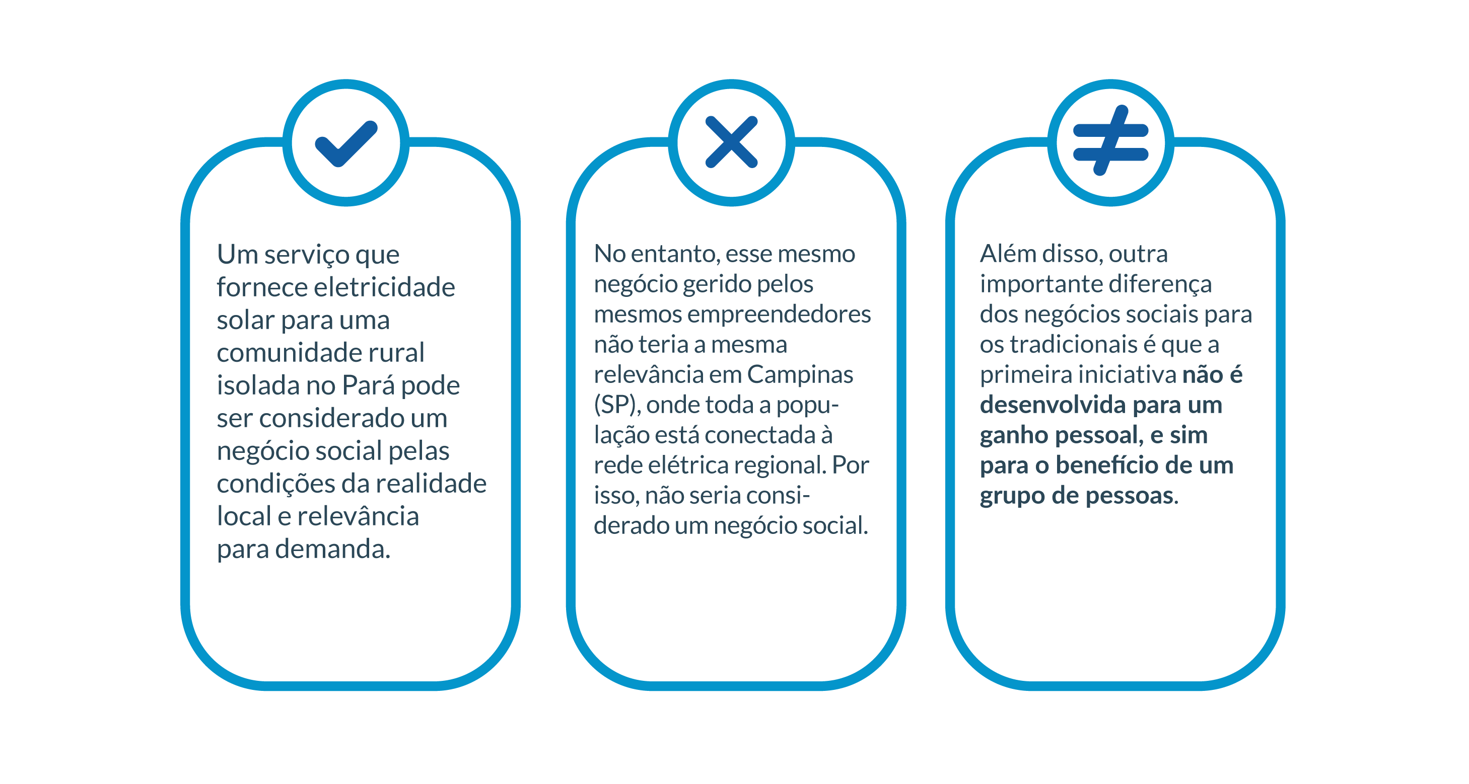 Causar um impacto positivo em uma comunidade + ampliar as perspectivas de pessoas marginalizadas pela sociedade + gerar renda compartilhada e autonomia financeira para os indivíduos de classe baixa = objetivos dos negócios sociais.