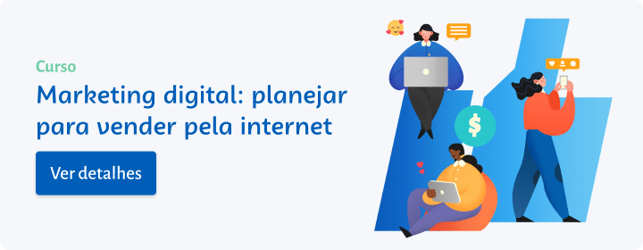 Marketing digital: planejar para vender pela internet: primeiro, você aprenderá sobre a influência da internet nos negócios. Depois, você estudará o planejamento para vender por meio dela e como os pilares PRODUTO, PREÇO, PRAÇA e PROMOÇÃO agem nos resultados. Por fim, você conhecerá os canais de comunicação e de vendas pela internet.