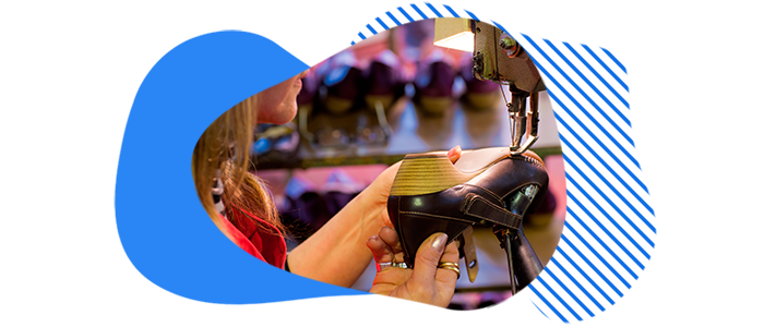 Palmilha: é um dos principais fatores de conforto no calçado pois fica em contato direto com o pé durante um longo período de uso. É fundamental que ela seja muito macia e que você possa forrá-la com tecidos de aproveitamento, adicionando um valor estético e sustentável ao calçado.