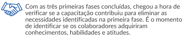 - Avaliação de reação: mede como os participantes reagiram ao programa logo após o término da capacitação. Pode ser aplicada em qualquer tipo de capacitação.