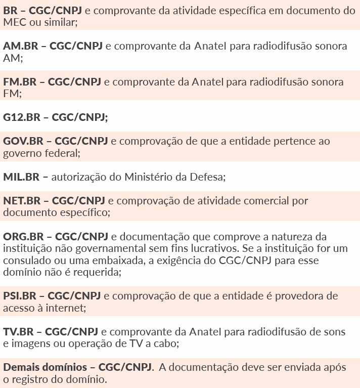 Algumas regras devem ser seguidas para a solicitação do registro de domínio: