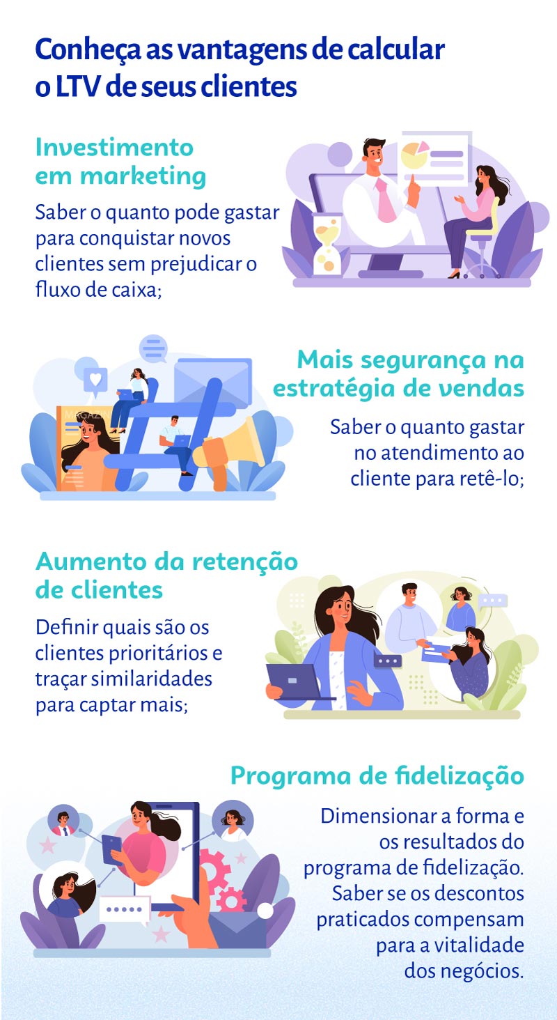 Mas, isso não quer dizer que a prioridade das empresas seja apenas atrair novos clientes, mas fidelizar os que já conquistou. O LTV dá a exata noção de quantas vezes um cliente pode comprar de sua empresa. Dessa forma, você consegue mensurar o quanto está disposto a investir para atrair essa conversão.