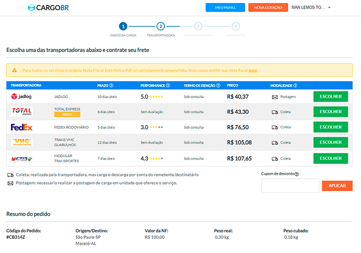 - Não é bem um comparador de frete, mas um hub de transportadoras com 48 integradas, como Jadlog, Loggi, Brasspress, Correios, DHL e Total) já integradas e mais de 200 que podem ser integradas mediante orçamento.